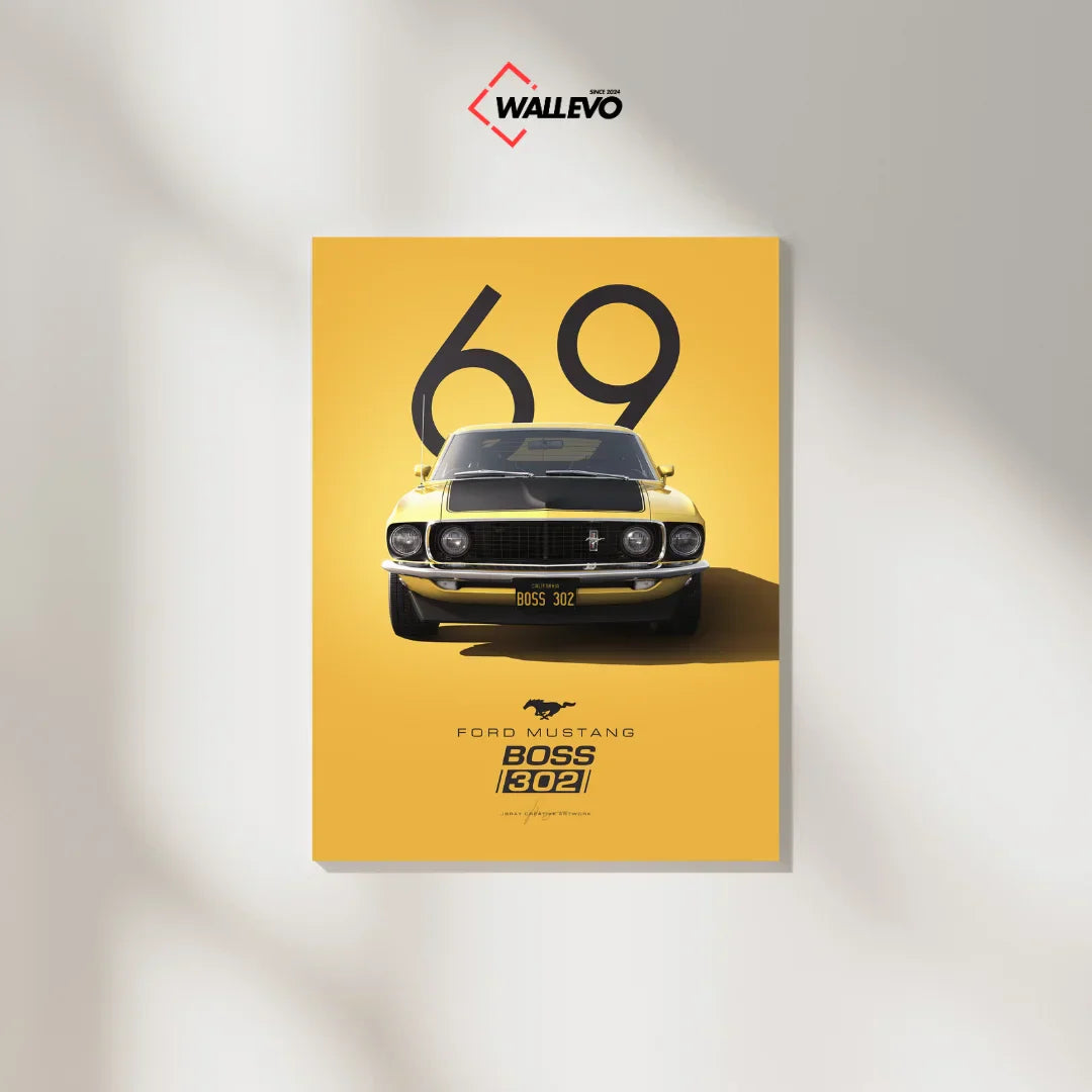 Bring the power and nostalgia of the 1969 Ford Mustang into your space with this stunning, ready-to-hang wall art from Wallevo – order yours today!