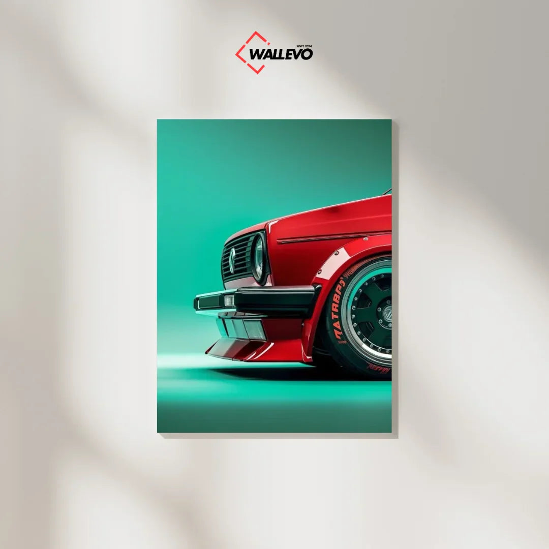 Turn your love for muscle cars into an eye-catching masterpiece with this Red Muscle Car Front View wall art from Wallevo – order yours today!